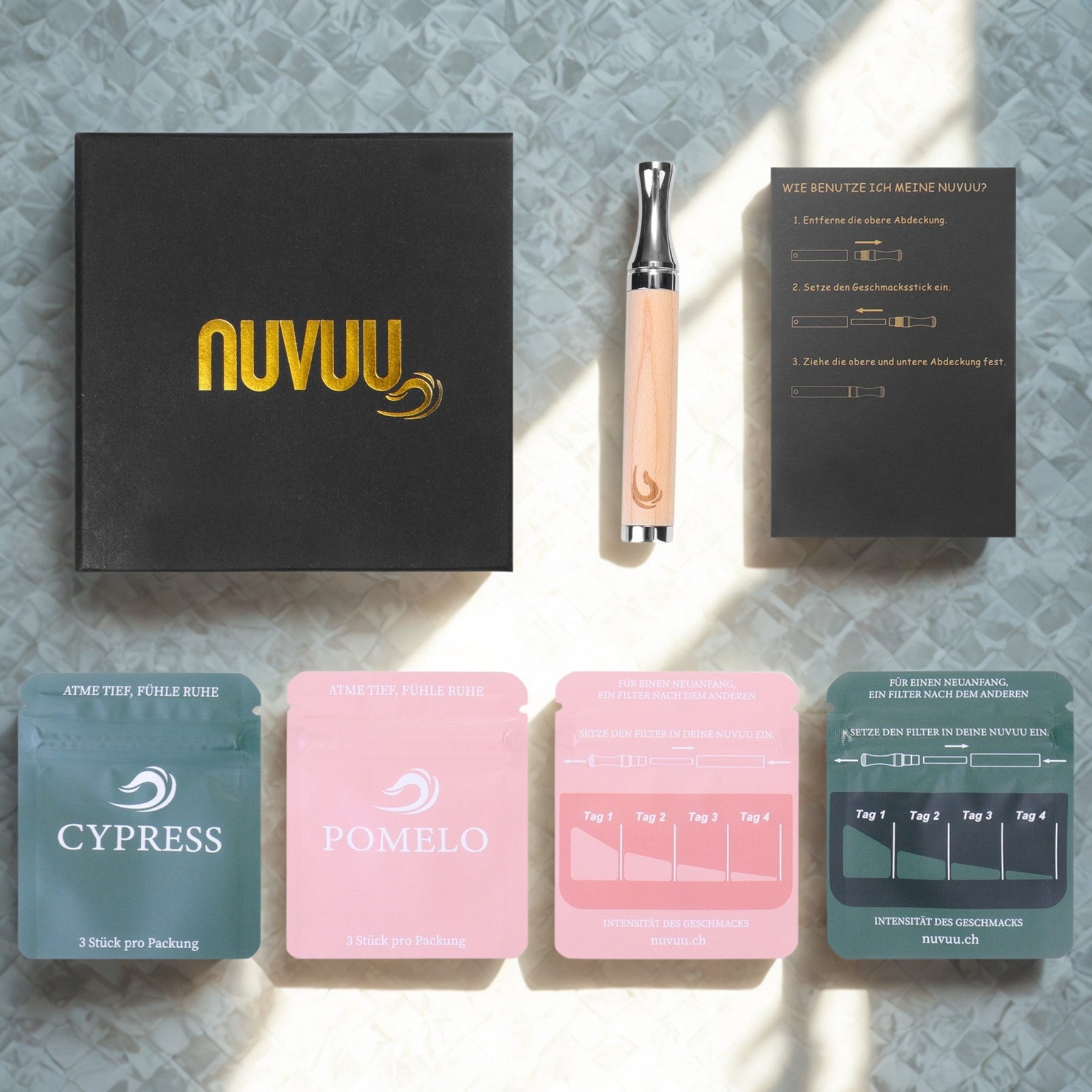 Mit dem NUVUU Starter Pack bekommst du alles, was du brauchst, um auf natürliche Weise mit dem Rauchen aufzuhören.